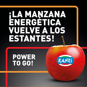 Un mensaje fuerte, claro y dinámico que expresa perfectamente lo que Kanzi® representa hoy: una fuente natural de energía, ideal para llevar a cualquier parte y afrontar los retos del día a día. Todo ello pensado para su público objetivo: un perfil joven, enérgico y activo, que busca sabor y vitalidad.