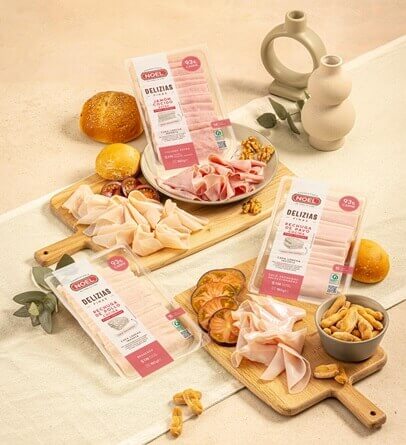 Noel Alimentaria desembarca en el segmento de las finas lonchas, donde no estaba presente hasta ahora, y lo hace con Delizias Finas, una nueva línea de productos presentada en finas láminas de calidad extra que responden al creciente interés por productos prácticos y saludables, adaptados a un estilo de vida activo y que ofrecen una opción versátil y equilibrada sin renunciar al sabor.