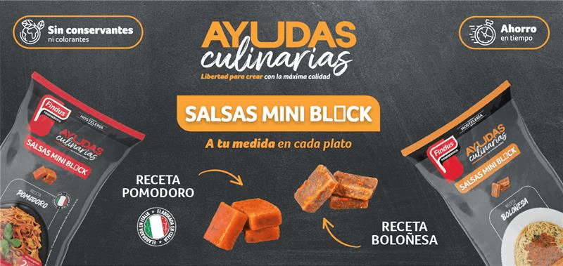 “La gastronomía italiana tiene una increíble aceptación dentro de nuestro país y creemos que este éxito no parará de crecer. Con el lanzamiento de las salsas Mini Block ayudaremos a cualquier establecimiento foodservice a ofrecer a sus clientes el mejor sabor y calidad de la comida italiana de una forma cómoda y versátil”, asegura el equipo de Findus Foodservice. “Todas las salsas son elaboradas en Italia con ingredientes seleccionados y 100% naturales, sin conservantes, ni aditivos, por lo que resultan la forma ideal de acercar el auténtico sabor italiano a los consumidores asegurando la mayor calidad”. Concluyen.